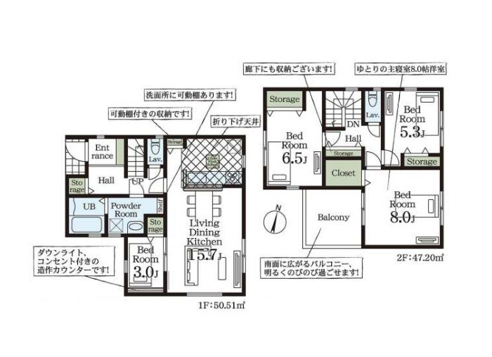 家族みんながゆったり暮らせる4LDKの新築戸建て。各所に収納を備えた設計で、お部屋をすっきり保てます。明るい南面バルコニーは洗濯物もよく乾き、毎日の家事も快適。駐車スペース2台分あり!(車種による)新生活を気持ちよくスタートできる一邸です。