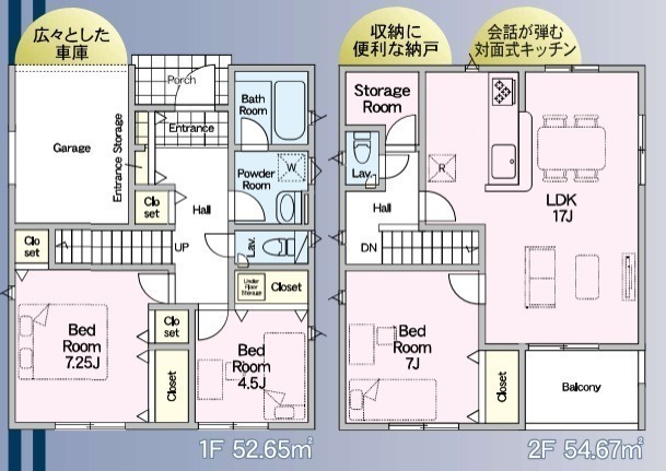 陽当たりとプライバシー性を確保しやすい2階リビングを採用した3LDKの新築戸建て。明るく開放感のある空間で、ご家族が自然と集まる心地よい住まいです。対面式キッチンはリビングを見渡せる設計で、家族との会話を楽しみながら家事ができます。さらに納戸付きで、季節物や趣味の道具などもすっきり収納可能。