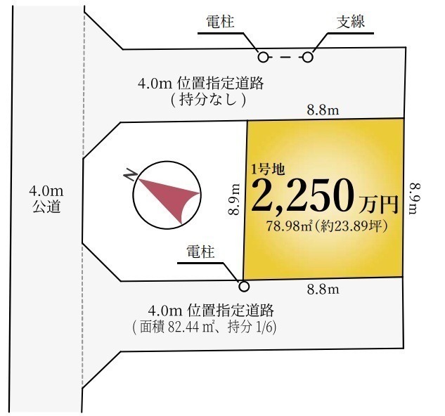 二方 北東:幅員4.0m接面幅8.8m私道 南西:幅員4.0m接面幅8.8m私道