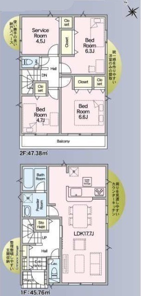 ・各居室に収納を完備しており、お部屋をすっきり広く使える設計。日々の生活動線もスムーズで快適な住み心地です。